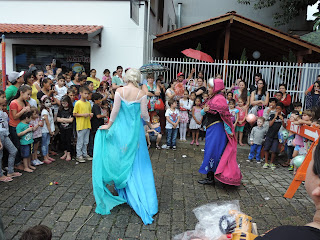 mágica com o mágico Elimar Russi e com as personagens do filme Frozen, Ana e